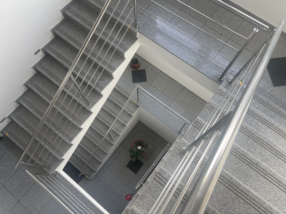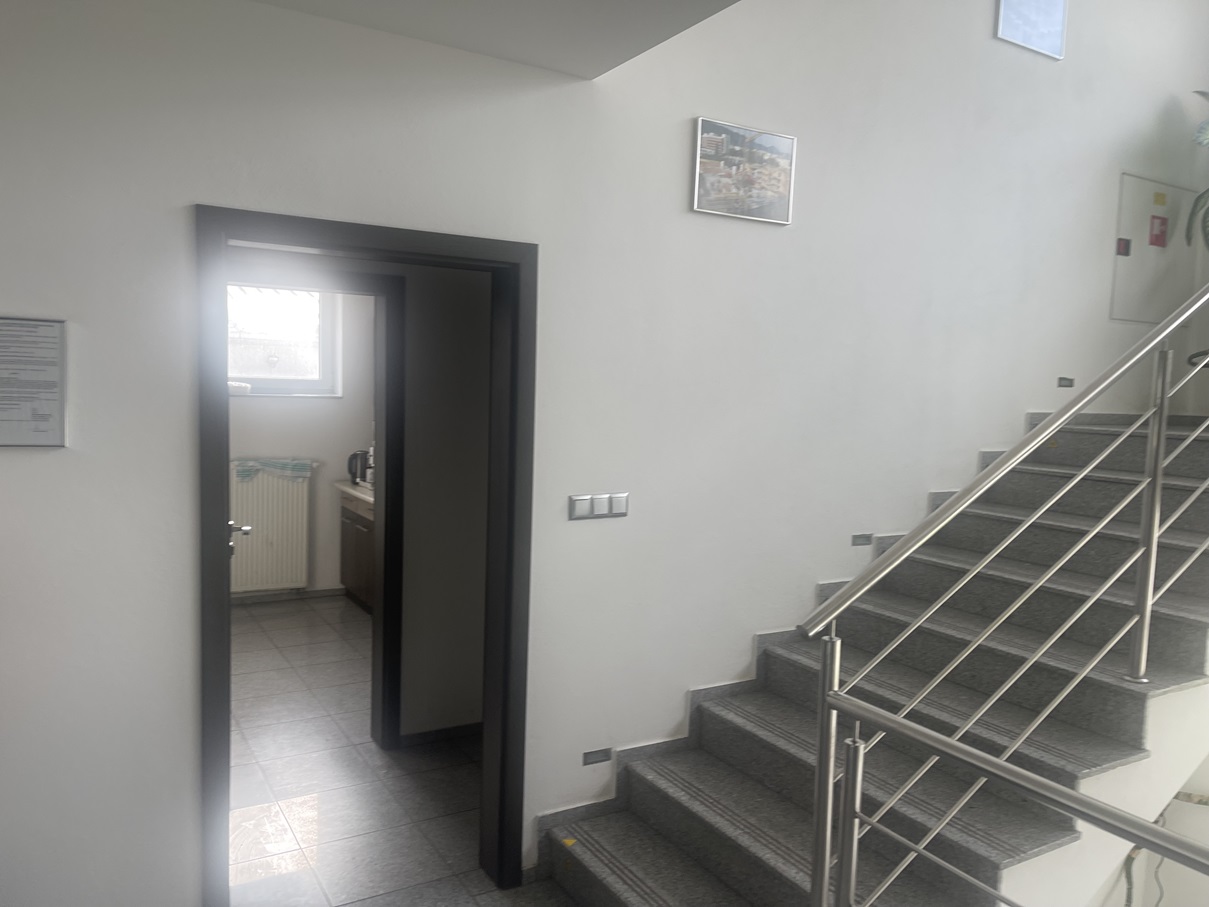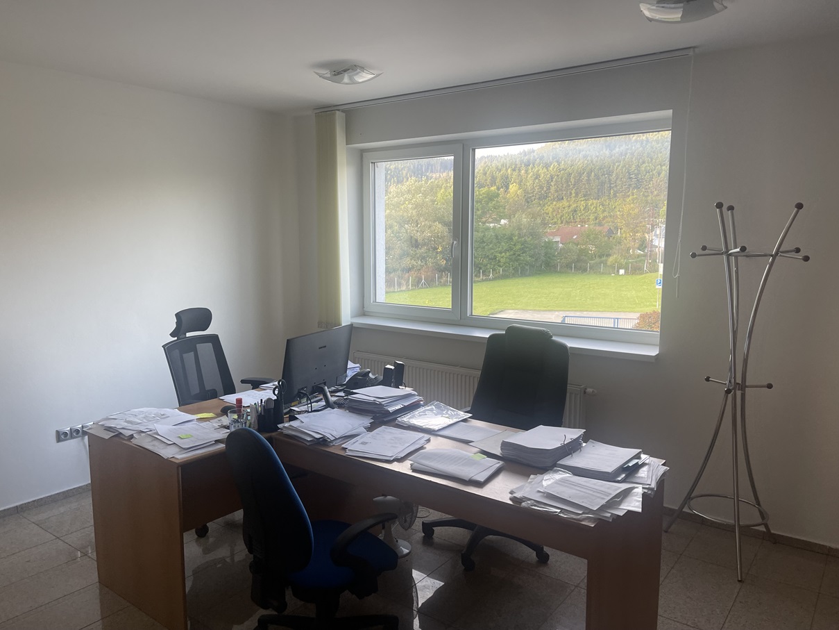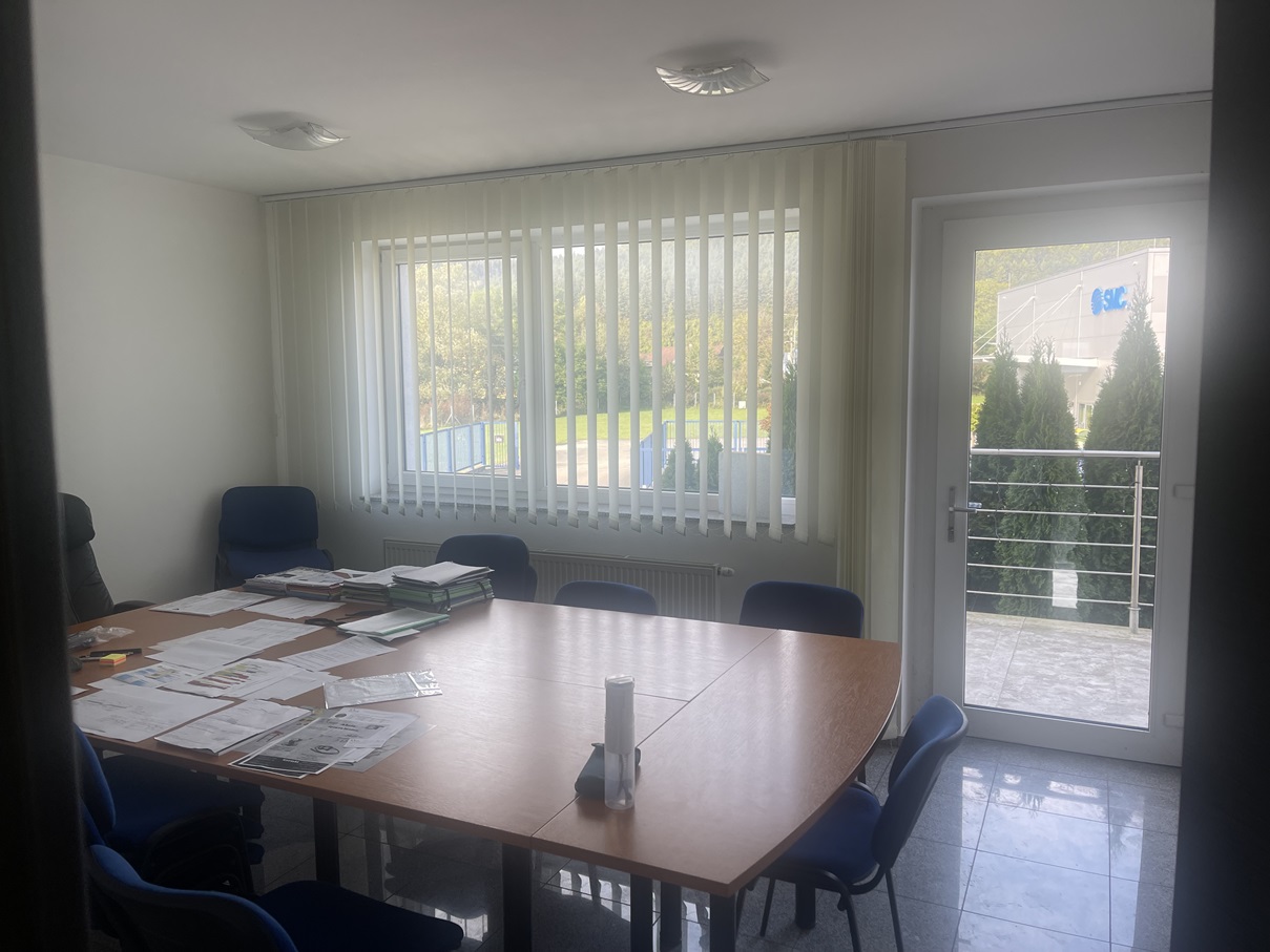 2.NP ŽB schodisko sa dostaneme na 2.NP, kde je zasadačka, kancelária, sekretariát, riaditeľ, kuchynka pre zamestnancov a sociálne zariadenie.