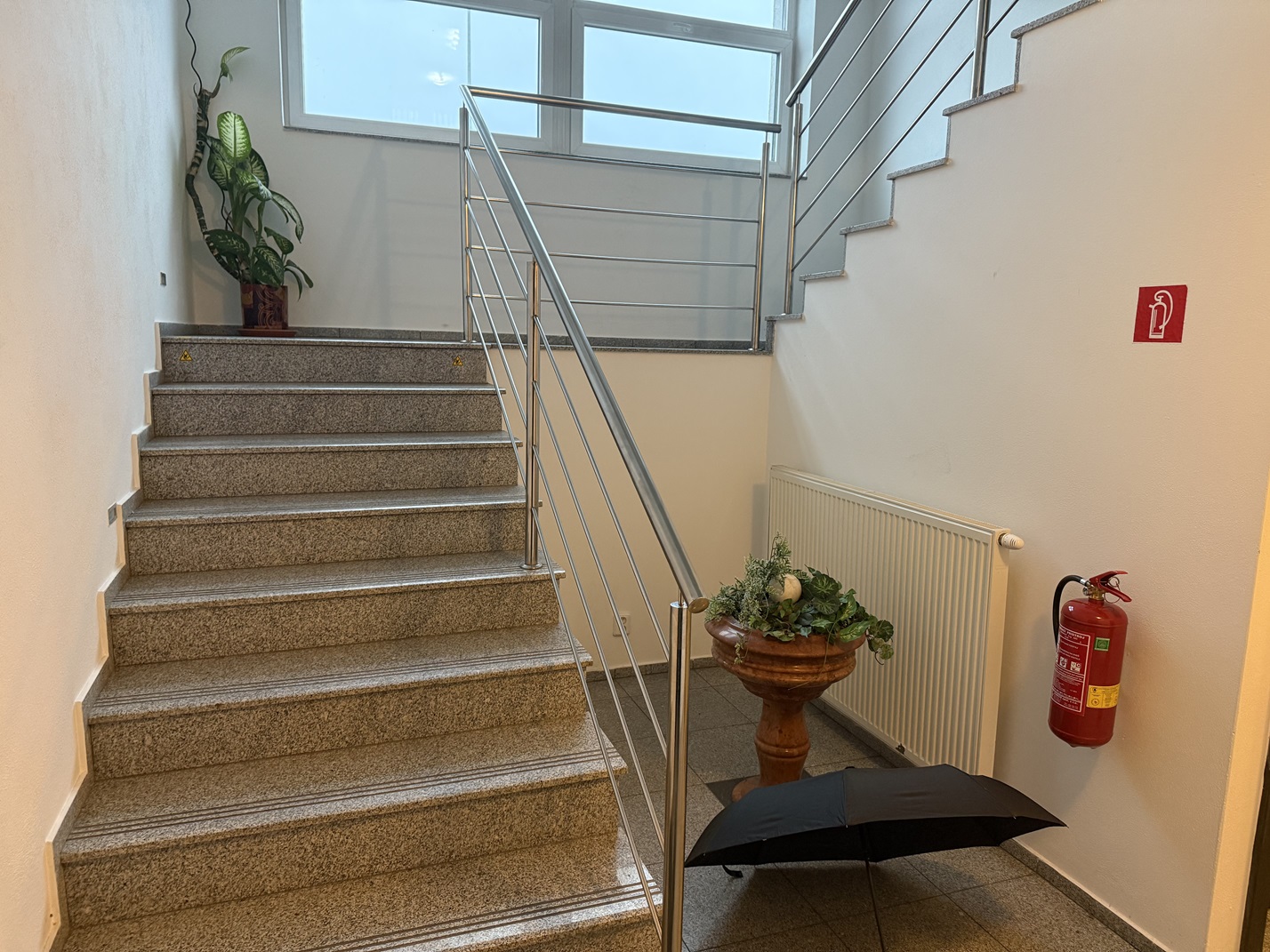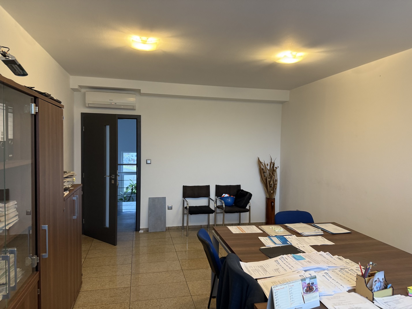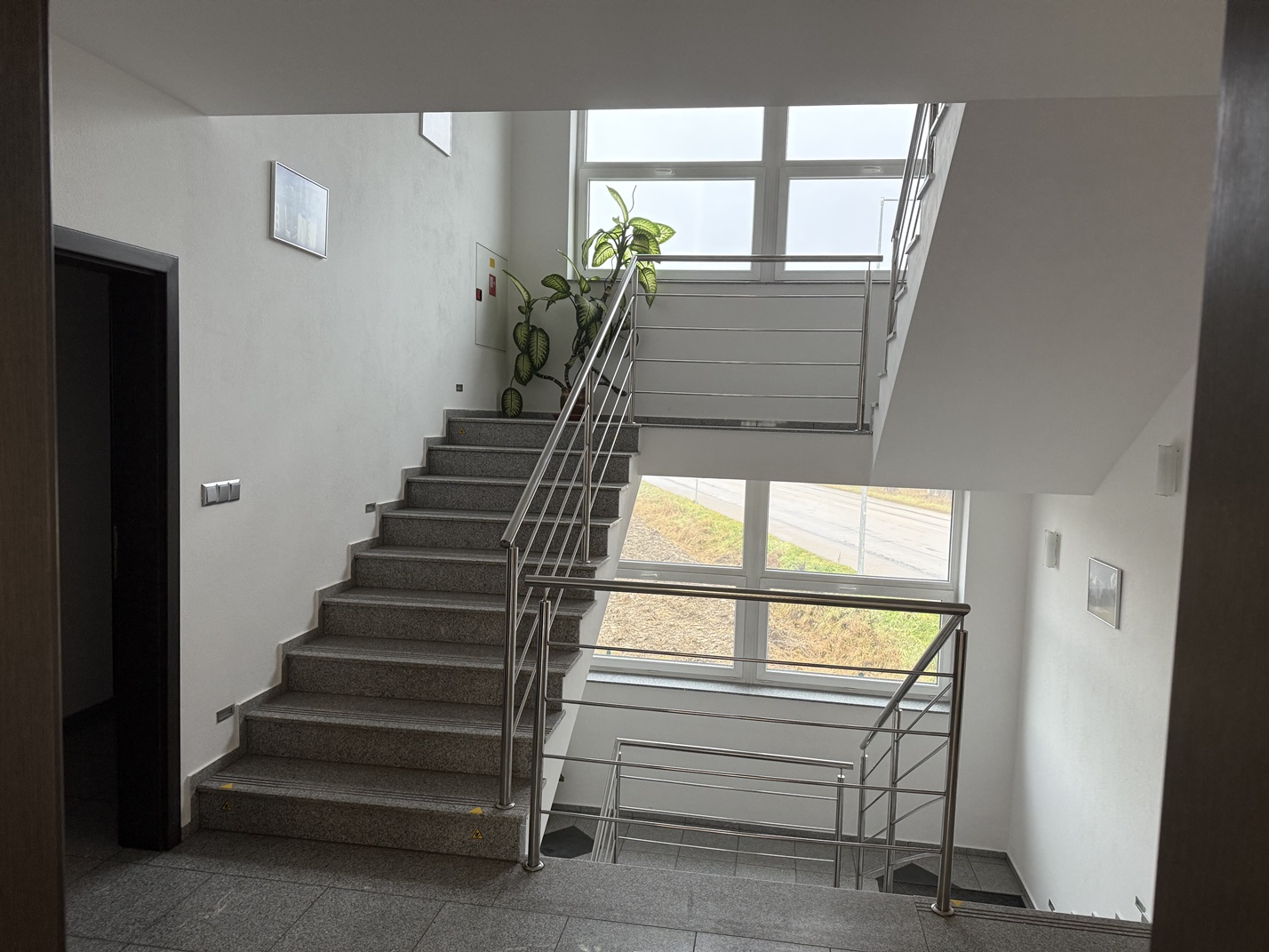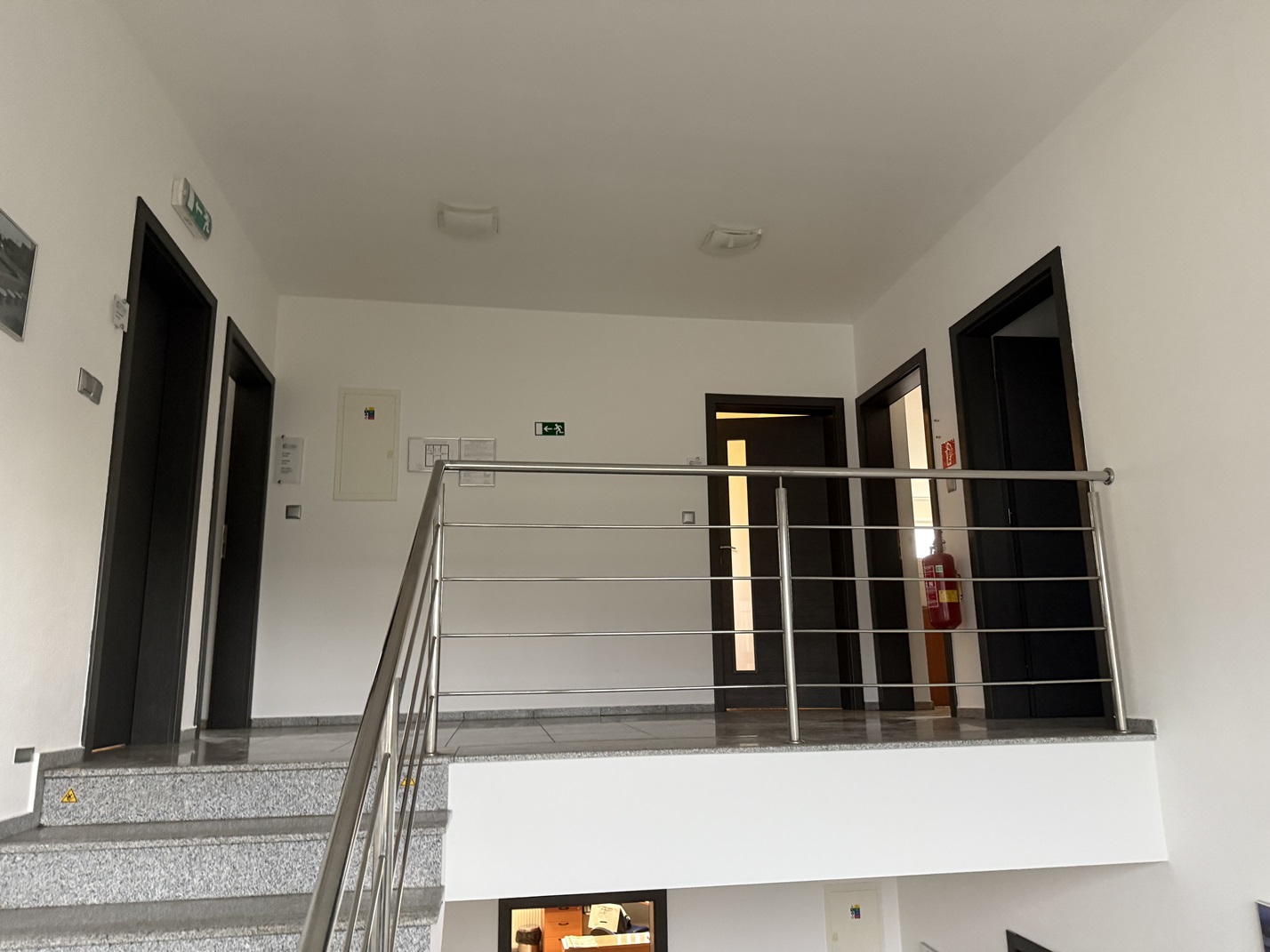 2.NP ŽB schodisko sa dostaneme na 2.NP, kde je zasadačka, kancelária, sekretariát, riaditeľ, kuchynka pre zamestnancov a sociálne zariadenie.