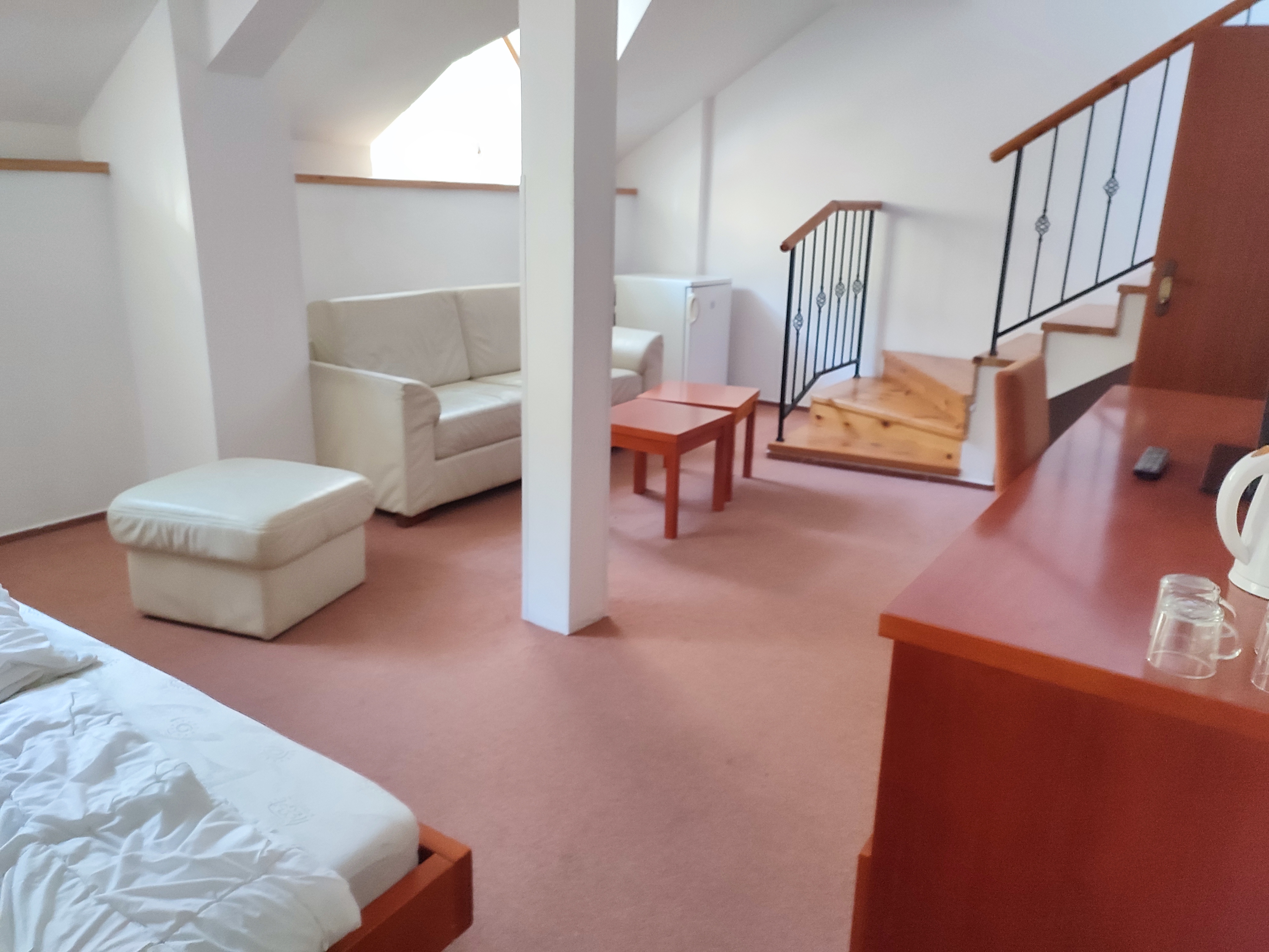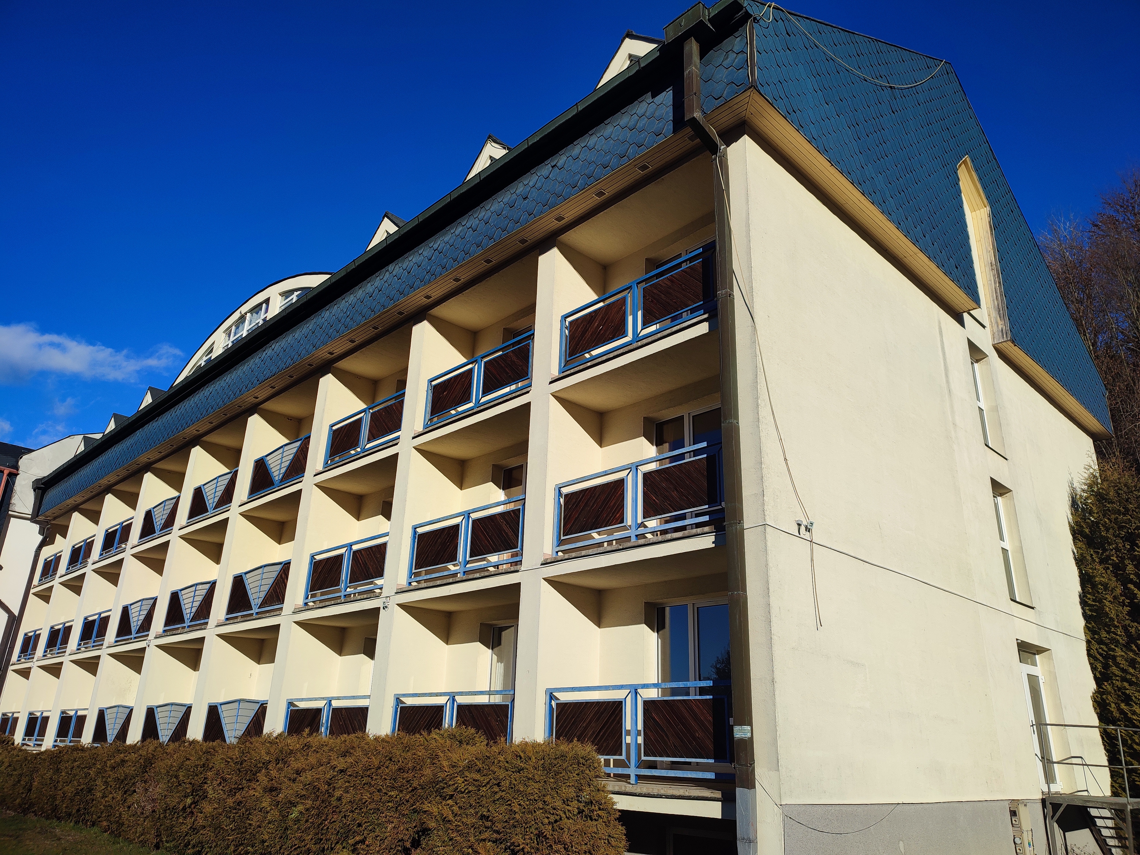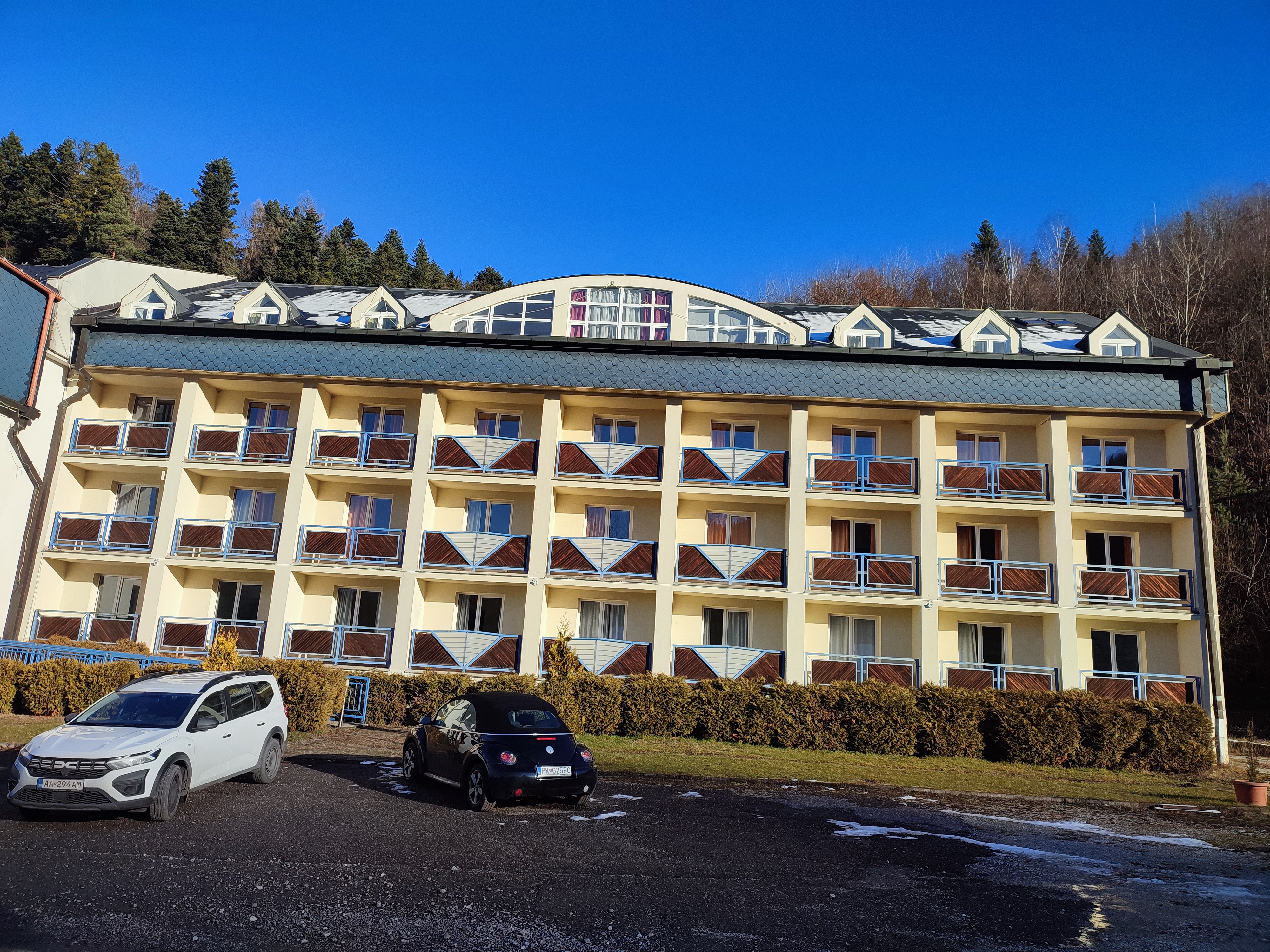 Stavba bez súpisného čísla na parc. č. 3458/21 na ulici Cintorínska č. 1173/3 v k. ú. Krompachy, mimo zastavaného územia obce Krompachy, okres Spišská Nová Ves, postavená na pozemku parc. KN č. 3458/21 je situovaná na celej výmere pozemku na ploche 153 m2, tesne v bezprostrednej blízkosti pri stavbe súp. č. 205 v jej severozápadnom rohu a využíva priestor pod jestvujúcou terasou ako vstavba. V liste vlastníctva nie je predmetná stavba zapísaná, nakoľko vznikla vstavbou pod terasou. Stavba terasy nie je zapísaná na LV, je uvedené na LV len pri pozemku, že na pozemku je postavená budova bez označenia súpisným číslom. Objekt je atypický, pravidelného pôdorysného tvaru “L”, je prízemný jednopodlažný a je prevádzkovo prepojený s hlavnou stavbou hotela súp. č. 205. Objekt bol dodatočne postavený pod priestorom terasy po roku 2006 a bol využívaný ako SKI servis. K tejto dodatočne realizovanej vstavbe pod terasou neboli znalcovi poskytnuté žiadne doklady, podklady a dokumentácia z jej realizácie. Terasa je uložená na stĺpovej zvislej nosnej kovovej konštrukcii a je zastrešená prístreškom z drevenej konštrukcie a je situovaná na pozemku parc. č. 3458/21. Terasa nie je zahrnutá v prvotnej projektovej dokumentácii. Terasa je prístupná z budovy hotela Plejsy súp. č. 205 z bowllingovej miestnosti č. 1.07 a tiež z predsadeného hlavného schodiska.